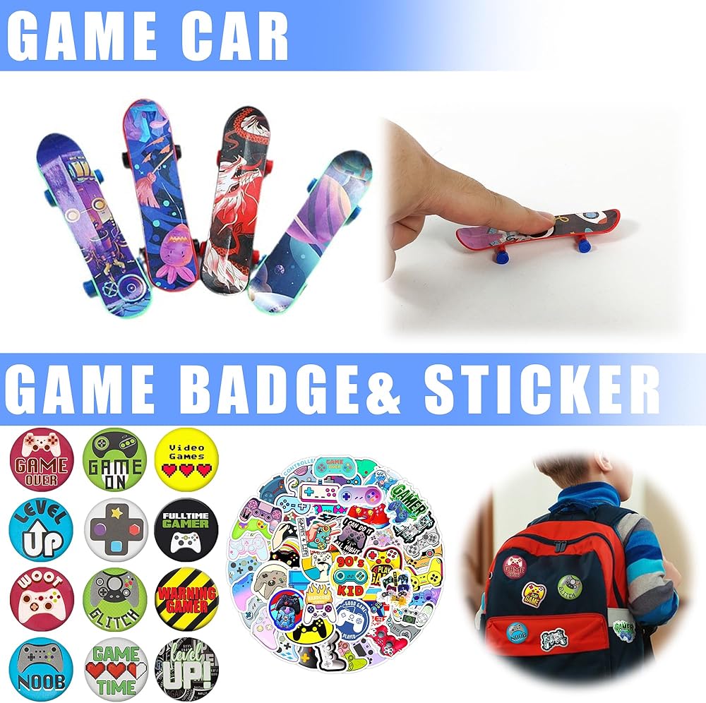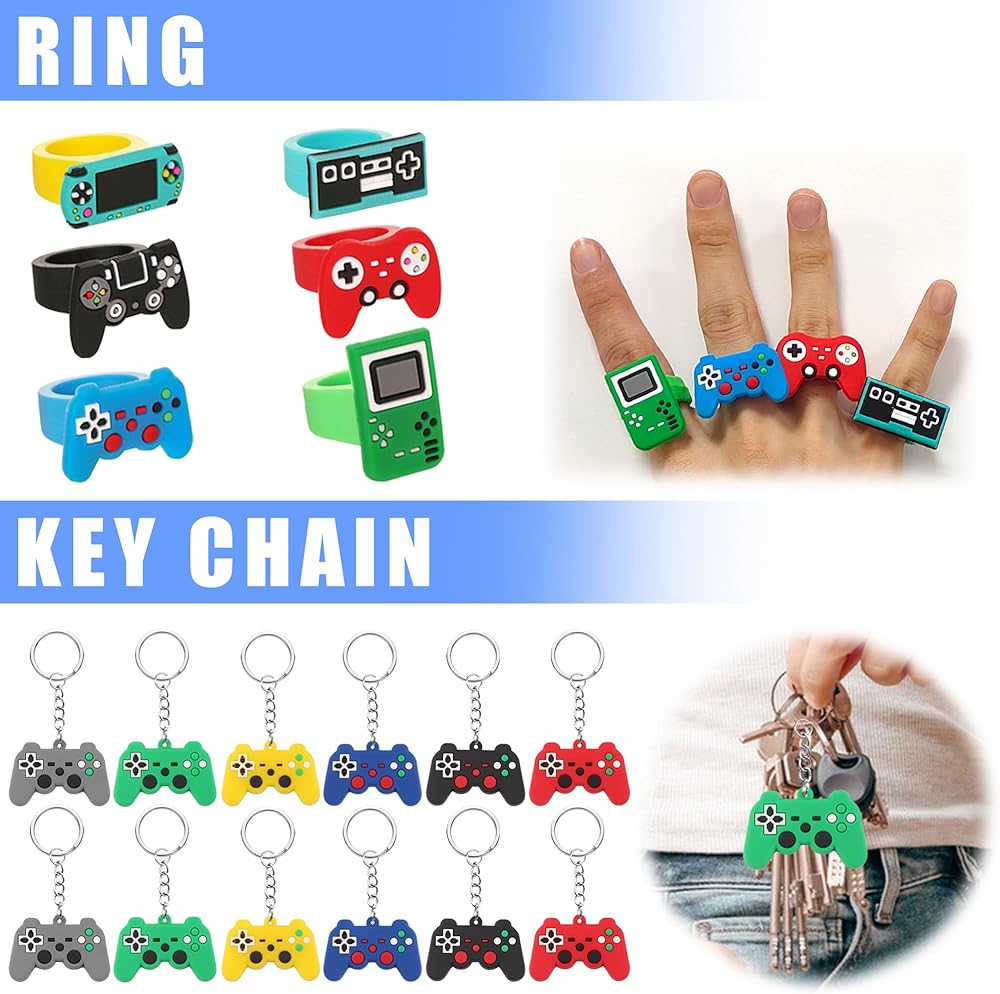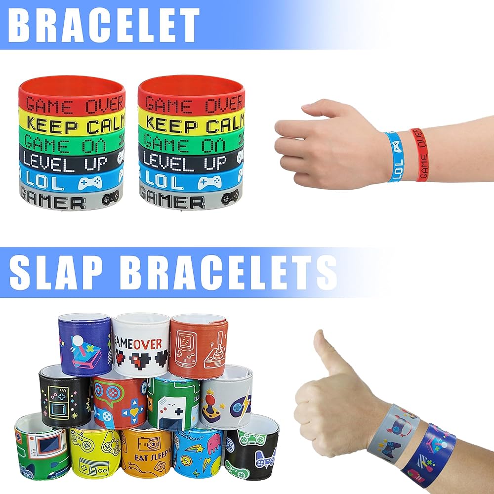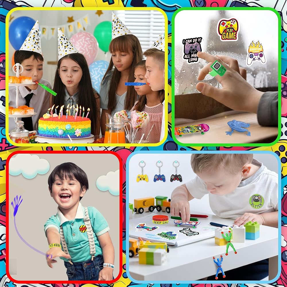 ستحصل على 12 قطعة مفاتيح مفاتيح ، و 12pcs معصم السيليكون ، و 50pcs ملصقات ، وشارات الأزرار 12pcs ، و 12pcs slap braclets ، و 16pcs ألعاب لزجة ، و 4pcs ألعاب التزلج ، و 8pcs قفز الضفادع ، و 6pcs.
