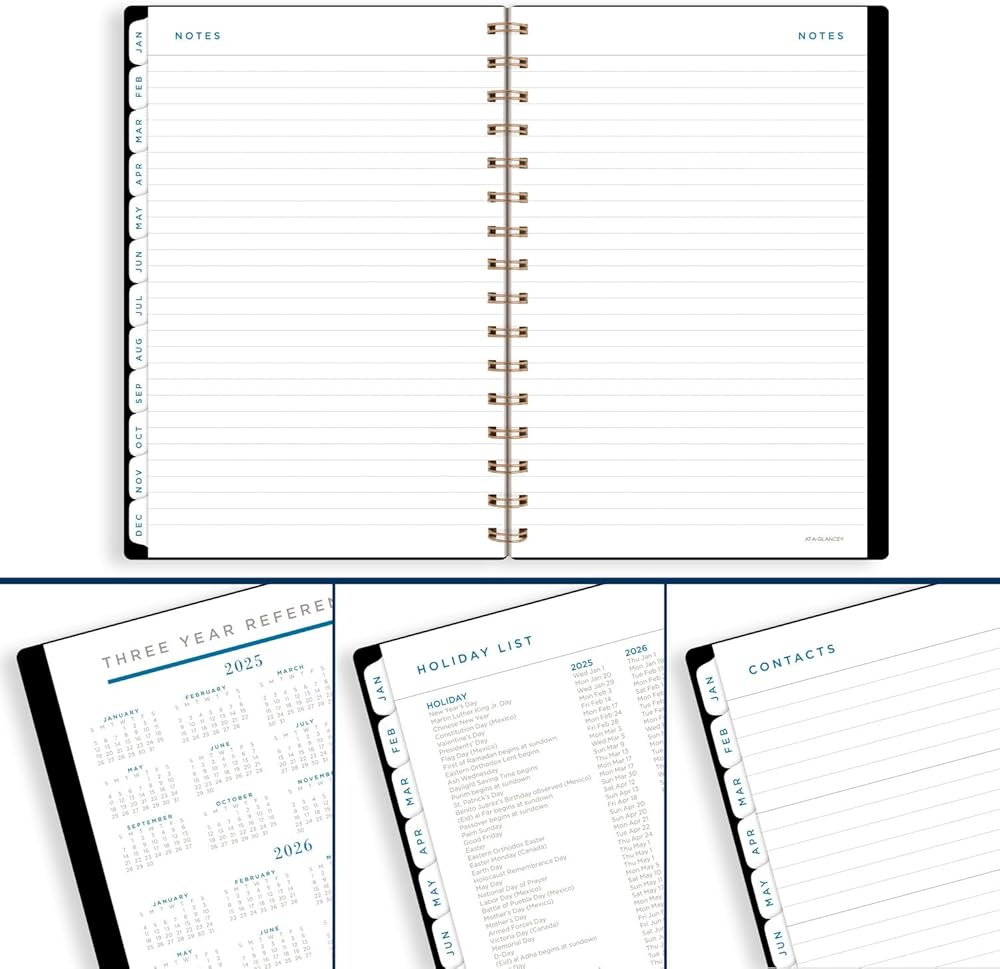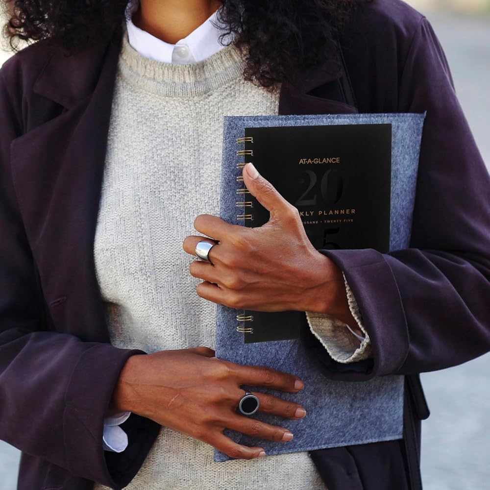The AT-A-GLANCE Signature Lite Weekly Monthly Planner gives you everything you need to stay on track this year in one sleek, modern package. Do it all this year with a planner that covers 12 months from January 2025 — December 2025. Guaranteed to last all year.* Give your planning some professional style with the modern and simplified black cover with bronze foil accents and a die cut year detail. Plan your schedule without fear of distracting ink bleeding. Our high-quality paper has ink bleed resistance to keep your planning pages neat. Weekly planning pages show day-to-day events and notes in an instant. 8-1/2" x 11" page size. Tabbed monthly overviews help you keep an eye on the big picture and get a jump on future plans. Get more done this year with help from special pages including 4 notes pages, 3 contacts, event calendar, holiday list and a 3-year reference calendar. Comes with a full set of stickers to highlight important events, emphasize priorities and mark special occasions. The flexible yet durable cover keeps it shape, while the twin wire binding helps prevent snags when you throw it in your bag. *ACCO Brands will replace any AT-A-GLANCE planner that is returned within one year from the date of purchase. This guarantee does not cover damage due to misuse or abuse.