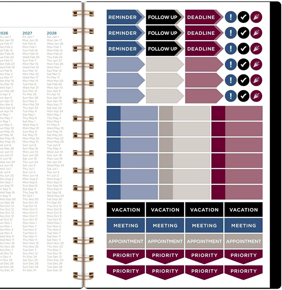 SPECIAL FEATURES – Get more done this year with help from special pages including 4 notes pages, 3 contacts, event calendar, holiday list, 3-year reference calendar and full set of stickers.