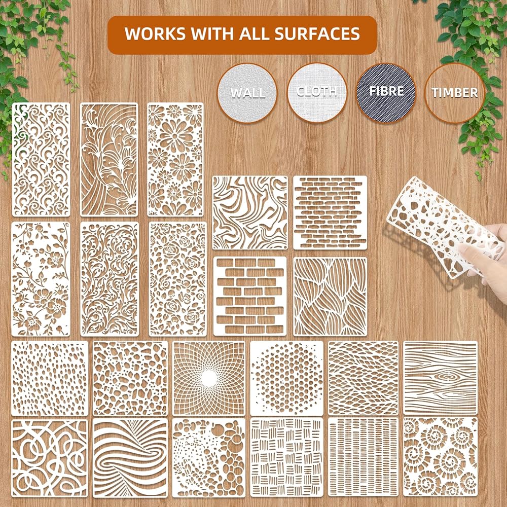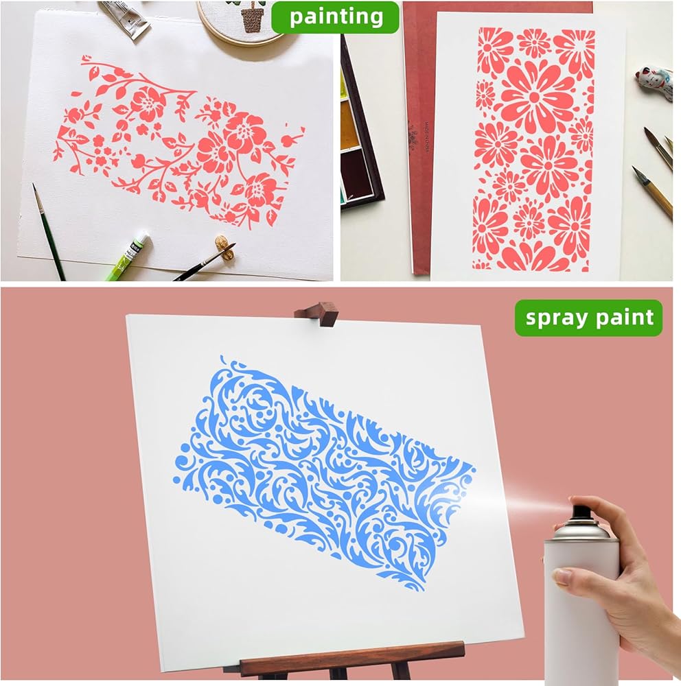 Easy to use and clean:Stencils are designed to be easy to use on any flat surface. Secure it in place with painter's tape and use a long-bristled stencil brush to control the paint, applying thin coats to avoid colour bleeding. After use, simply wash the stencil with soap and water and reuse