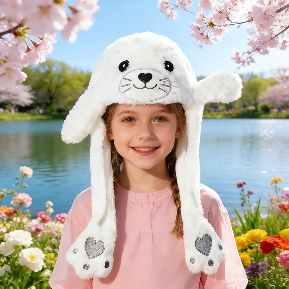 Plush Ear Moving Jumping Hat,Cute Fluffy Cap, Soft Warm HeadWear,Bunny Hat Christmas Holiday Party Gift for Boys Girls