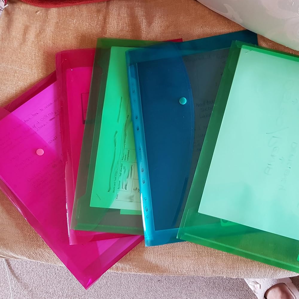 خيارات ألوان متعددة - يوفر هذا المجلد مع جيب 6 ألوان للاختيار من بينها: شفاف ، أزرق ، أحمر ، وردي ، أخضر ، أصفر. يمكن أن تساعدك الألوان المختلفة في تصنيف الملفات وجعلها سهلة التعرف عليها.