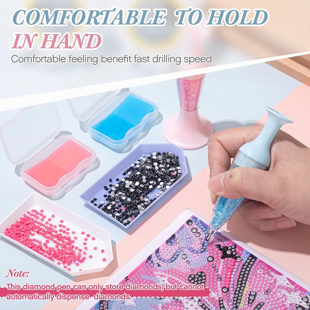 • Quality Material and Package Inclusions: the Diamond Art Painting Tools and Accessories Kit provides a durable and efficient experience with its quality plastic handle and stainless steel pen tip diamond art pens; The kit includes 2 pcs Diamond Art Painting Pen, 2 pcs Diamond Art Painting Trays, and 2 pcs of Glue Clay, all of which are sturdy and durable, aimed to provide prolonged usage