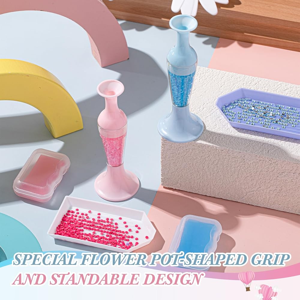 The pretty flower pot design of the Diamond Art Painting pen allows for the easy and stable placement on any flat surface when not in use. This feature ensures no accidentally misplaced or lost pens, providing extra convenience.