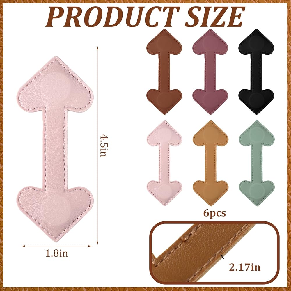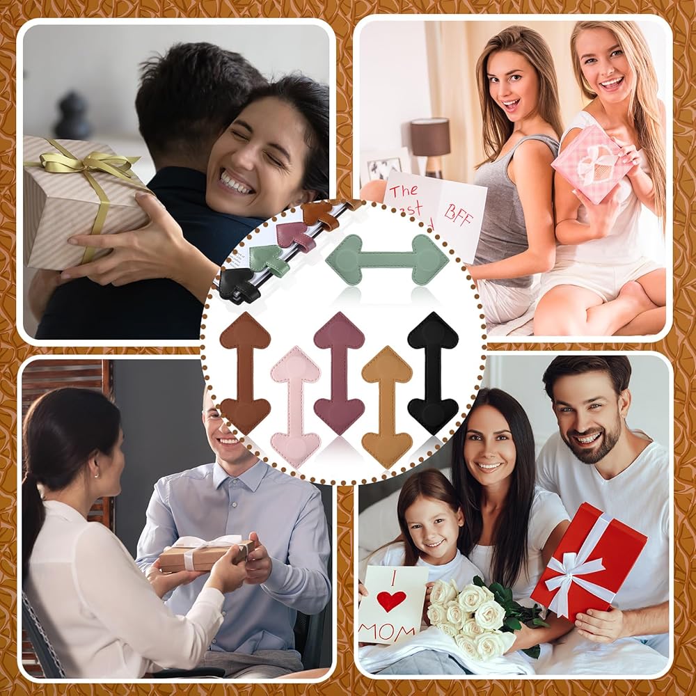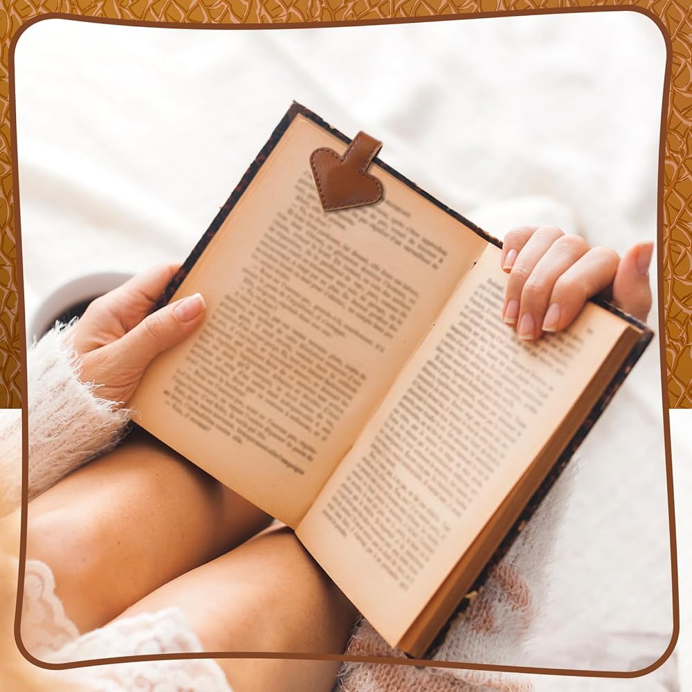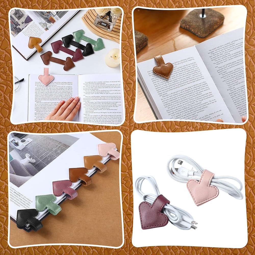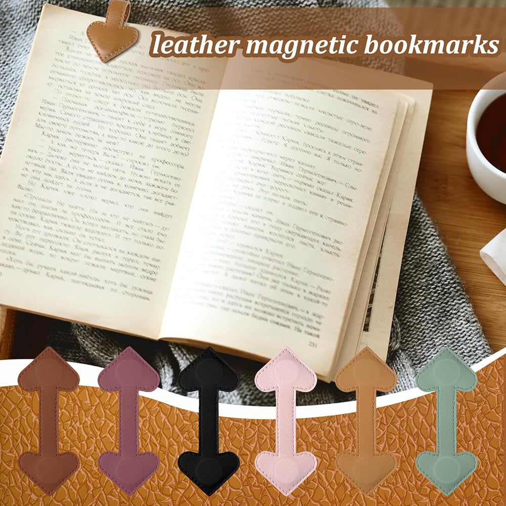 6 x Heart magnetic leather bookmarks