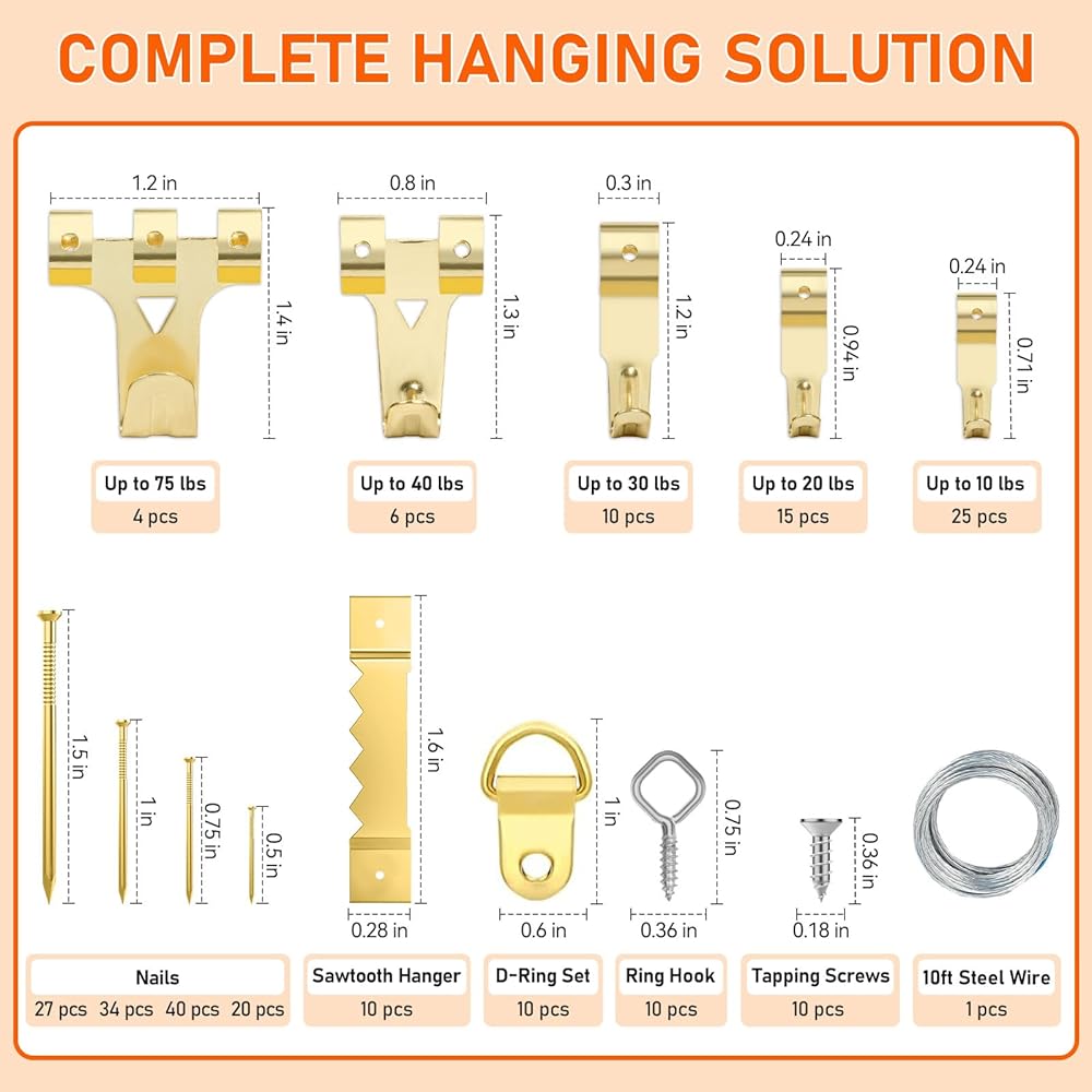 شامل ومتعدد الاستخدامات: تأتي مجموعة معلقة من 315 قطعة معلقة ، والمعروفة أيضًا باسم مجموعة معلقة على الحائط ، أو مجموعة معلقة إطار ، أو مجموعة معلقة إطار الصورة ، مع جميع الملحقات اللازمة ، بما في ذلك الخطافات والأسلاك والأظافر لصور معلقة وحلقات D ومستوى مغناطيسي ومطرقة ميني ميني مغناطيسية. سواء كنت ترغب في تعليق الأعمال الفنية أو الصور أو المرايا أو المفرطات أو الساعات ، فقد جعلتك هذه المجموعة مغطاة