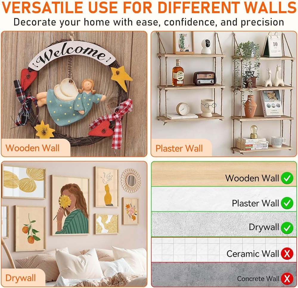 الاستخدام متعدد الاستخدامات لجدران مختلفة: مع أنواع مختلفة من الملحقات ، يمكن استخدام هذه المجموعة المعلقة على جدران الخشب والجص والجدران الجافة والأسمنت. إنه يأتي مع أظافر أسمنت قوية وموثوقة يمكنها تحمل العناصر الثقيلة على جدران الأسمنت ، وهي فريدة من نوعها مقارنة بمجموعات معلقة أخرى. تشتمل مجموعة الأسلاك المعلقة على الصورة أيضًا على أحجام وأنواع مختلفة من السنانير والأسلاك التي يمكن أن تحتفظ بأوزان وأحجام مختلفة من العناصر ، مما يجعلها متعددة الاستخدامات لتلبية احتياجات الديكور المختلفة