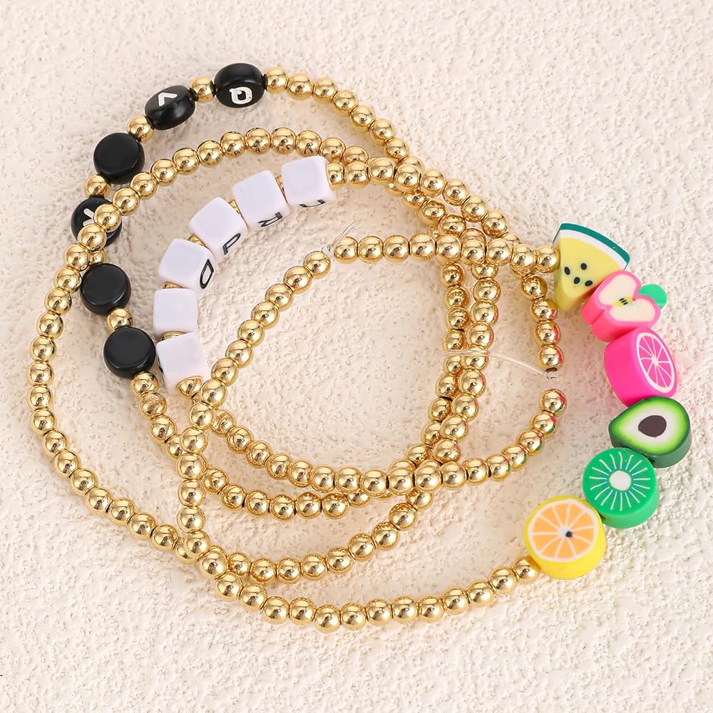 STACKABLE JEWELRY MAKING: Our gold beads are very suitable for matching with other matching clay beads, rhinestones, pearls, letter beads, etc., stacking to create more jewelry, giving you a different use experience.