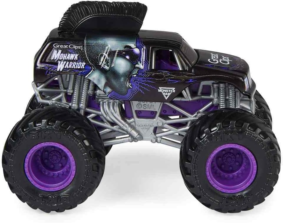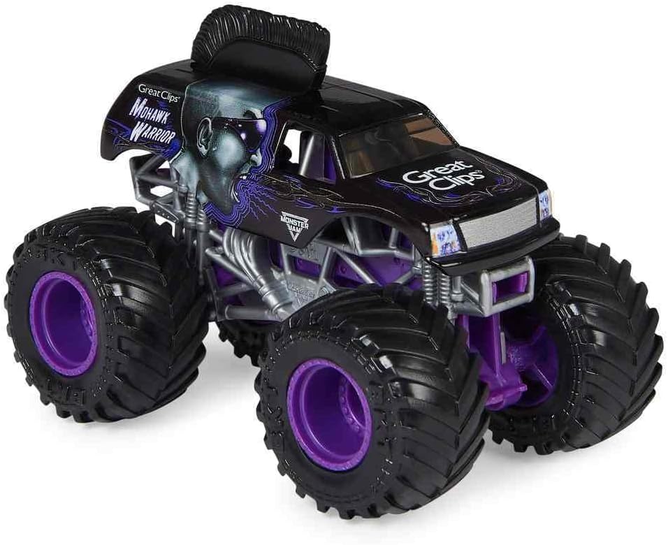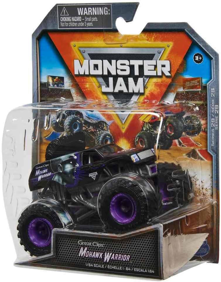 Monster Jam 2023 Spin Master 1:64 Scale Diecast Truck Series 29 Legacy Trucks Series Mohawk Warrior. Introducing the all-new, official 1:64 scale die-cast Monster Jam monster truck! This lean, mean, Monster Jam machine features awesome graphics and details. With official BKT Tires, stylized rims, and an authentic chassis, this monster truck embodies the style and swagger of its real-life counterpart! Each 1:64 scale toy truck comes complete with a driver molded into the driver's seat. This 1:64 scale die-cast Monster Jam truck is just like the real thing – only fun size! Plus, easily keep track of your collection with the exclusive downloadable collector poster. Monster Jam monster truck toys are the perfect gifts for kids ages 3 and up. Bring home your favorite Monster Jam monster trucks and start building your collection today!