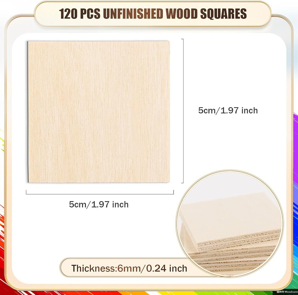 • Wooden Squares for Crafts:The package contains 120 pieces of wood squares for crafts, each wood square cutout measures 5 x 5 cm/1.97 x 1.97 inches, and the thickness is 6 mm/0.24 inches, enough to meet your various decorative and DIY needs