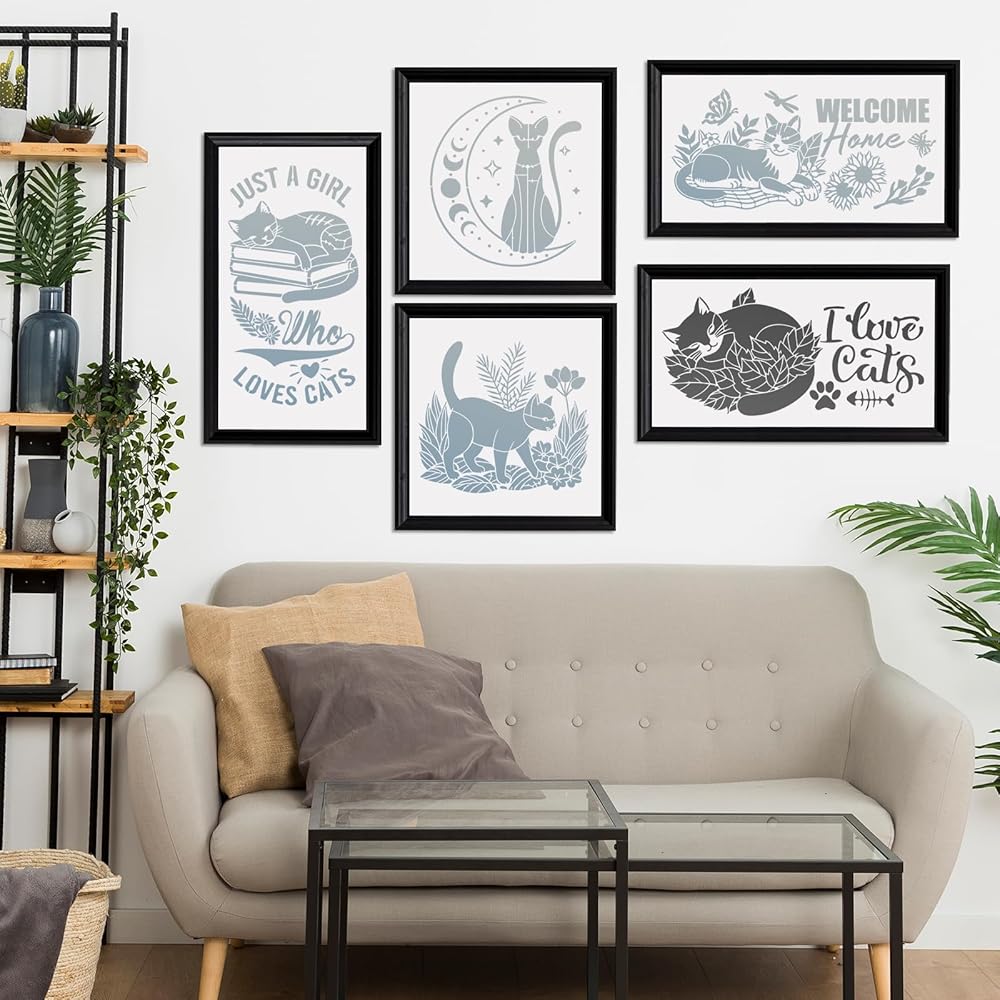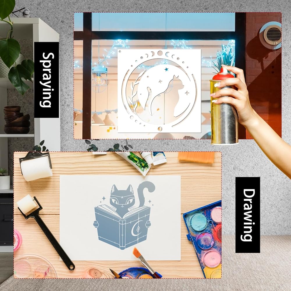 • الإلهام الإبداعي: ​​أشعل إبداعك وتخصيص مساحتك مع هذه الإستنسل الفريدة التي تجمع بين سحر القطط وجمال الكتب والزهور
