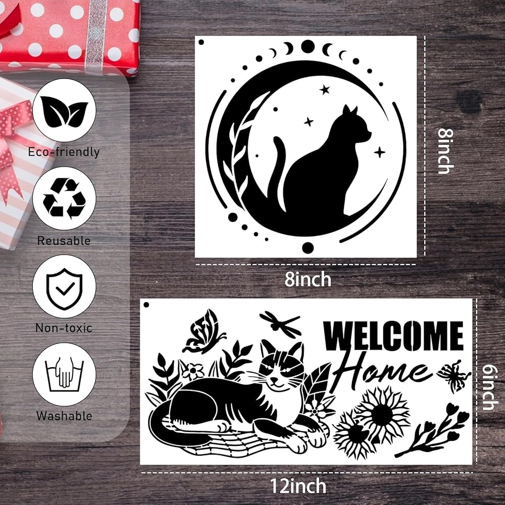 • تصاميم غريب الأطوار: يتميز كل استنسل بزخارف قطة القمر الرائعة التي من المؤكد أنها تسعد عشاق القطط وعشاق الصياغة على حد سواء