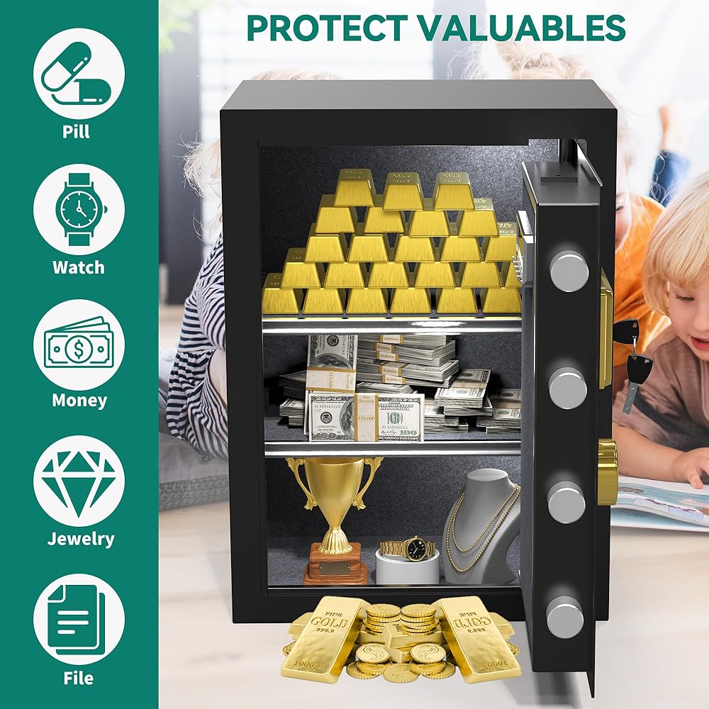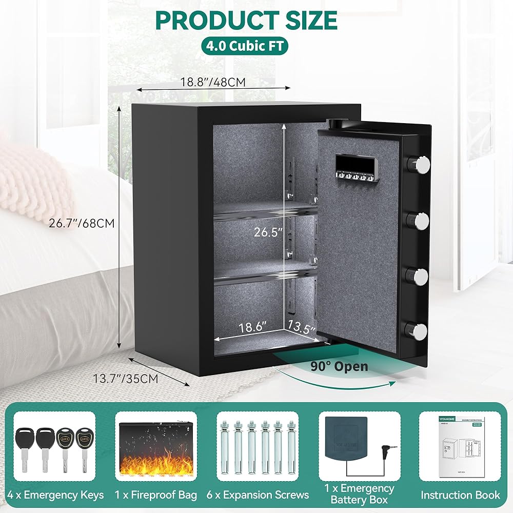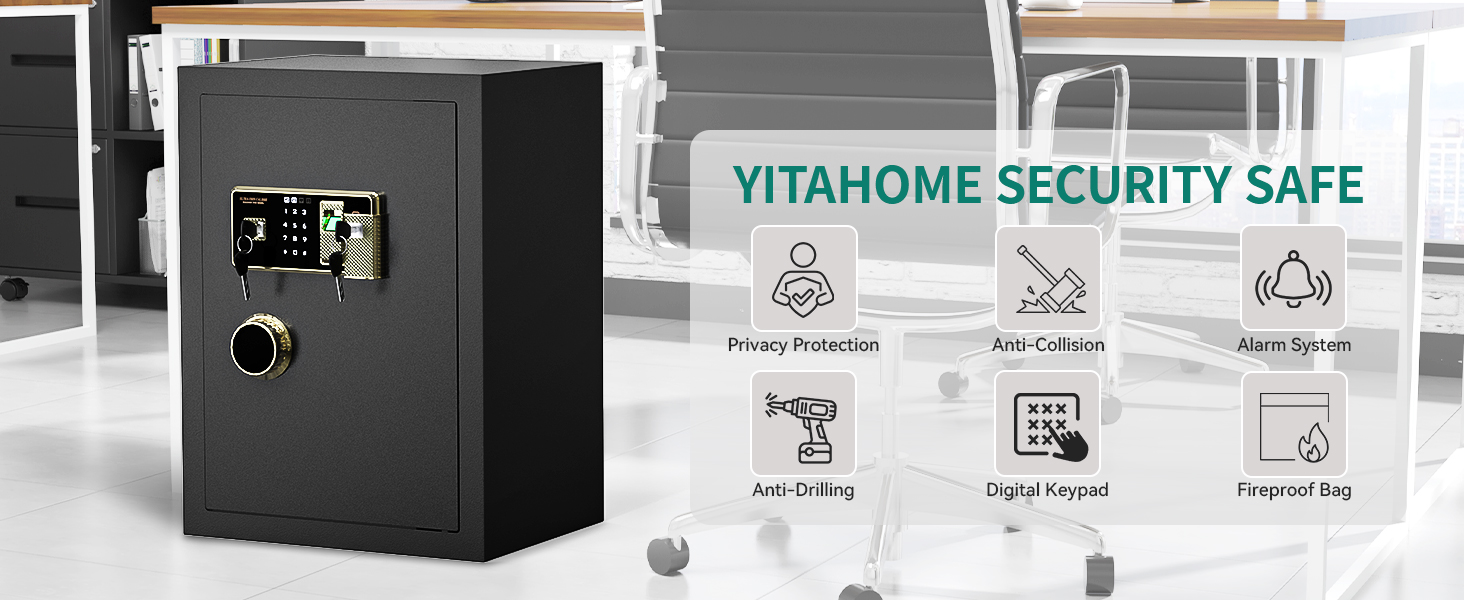 Yitahome 4 cu ft بصمات الأصابع آمنة للاستخدام المنزلي - حقيبة مستندات مقاومة للحريق ، قفل أمان لوحة مفاتيح رقمية آمنة مع رف قابل للإزالة لفندق المكاتب المنزلية - يحمي المال ، المجوهرات ، النقد