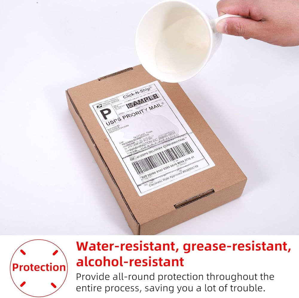 Premium Quality - Lint free paper reduces paper jams. Water resistant, oil resistant, friction resistant for extreme durability. Our shipping paper rolls are 100% BPA Free which provide high quality crisp, dark imaging and smooth printing effects and fast processing
