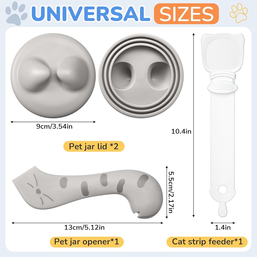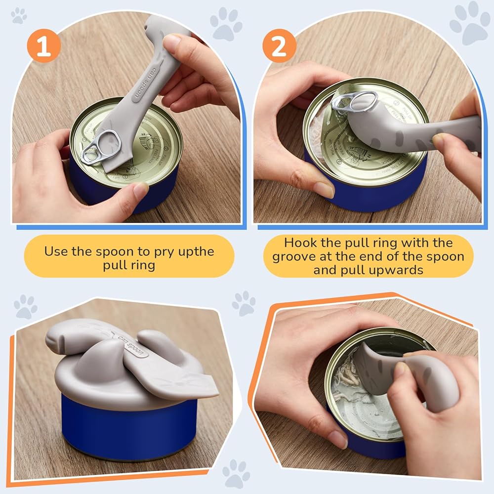 Ultimate Convenience: this cat food can lid and spoon set is a must-have for pet owners! It comprises four units with a seamless blend of quality and functionality; The set contains can lids and an opener that are easy to operate, eliminating unnecessary struggles during feeding time