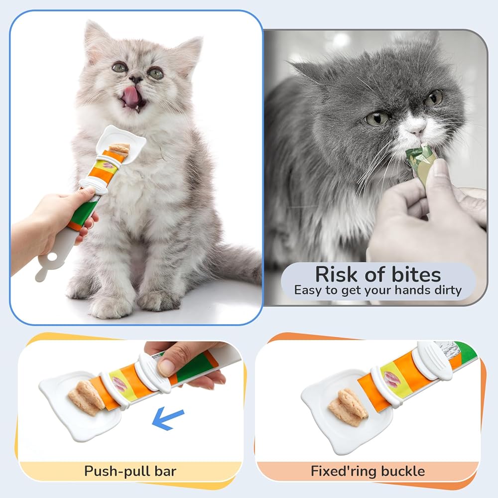 PET Food Can Lid Set: you will receive a set of 4, includes 2 silicone pet food can lids, 1 canning spoon (can double as a scraper), 1 cat strip feeder, cat food can lid, this is a ideal combination to meet your pet's daily needs