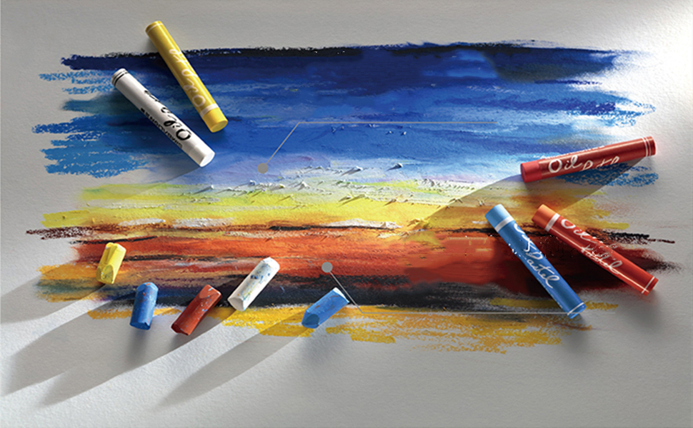 يمكن استخدامها لتقديم الألوان: يوضح تمامًا خصائص اللوحة الزيتية. أداة الطلاء هذه لديها قابلية للذوبان في الماء. يمكن إضافة باستيل الزيت إلى الماء لإنتاج تأثير هالة. يمكن استخدامه لتقنيات الطلاء المختلفة.