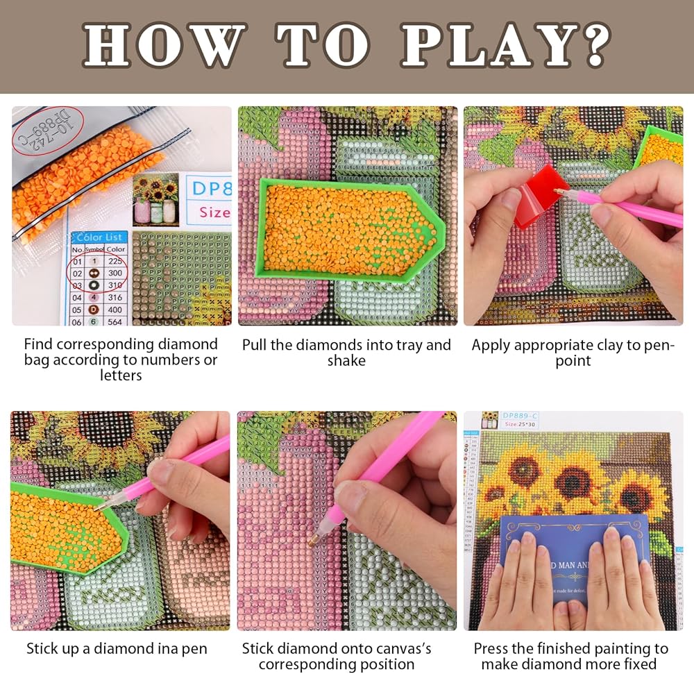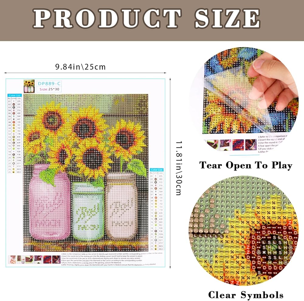 مادة عالية الجودة: مجموعة الطلاء الماس عباد الشمس عبارة عن قماش لزج محميًا بواسطة غطاء بلاستيكي. القماش عبارة عن قماش طلاء زيت عالي الدقة المطبوع الذي يعتبر مقاومًا للماء ، ولديه عصي قوي ، ولديه طباعة واضحة ، ولديها رموز رسائل واضحة وسهلة القراءة.