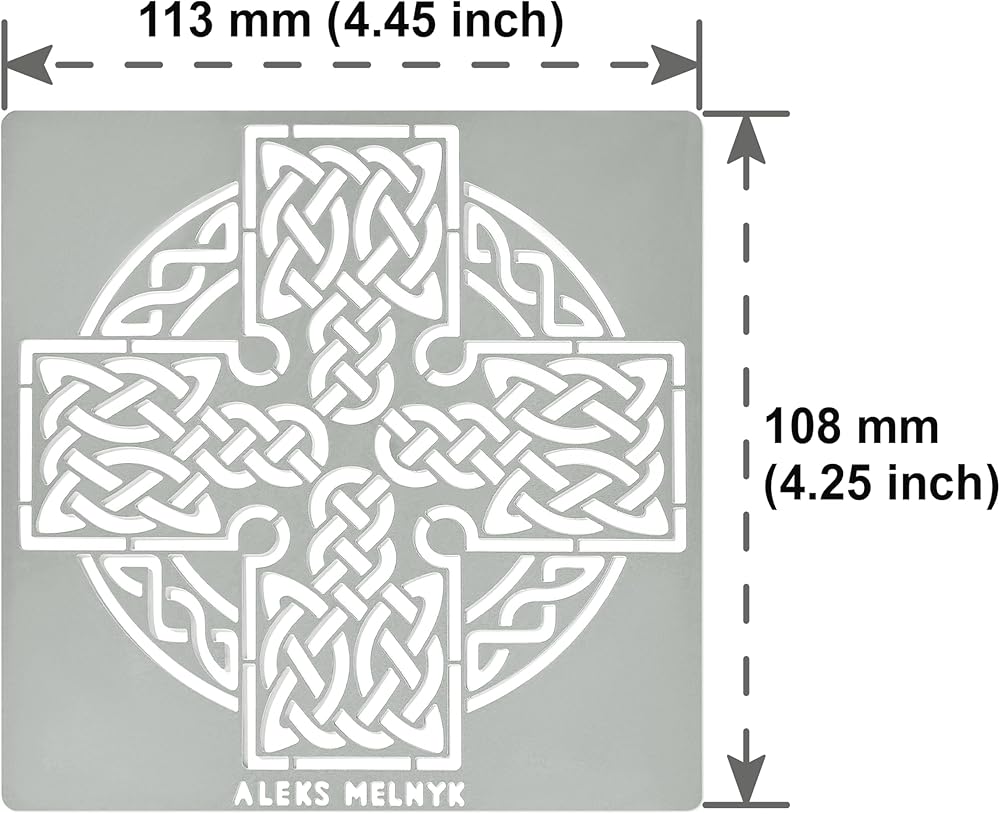 • WICCA Stencil "Celtic Knot" - أداة رائعة للمبتدئين ، المتوسطة والمهنيين. قالب معدني - الفولاذ المقاوم للصدأ ، 4.5 × 4.3 بوصة (11.3 × 10.8 сm) ، سمك: 0.3 مم. استنسل معدني قابل لإعادة الاستخدام - 1 جهاز كمبيوتر