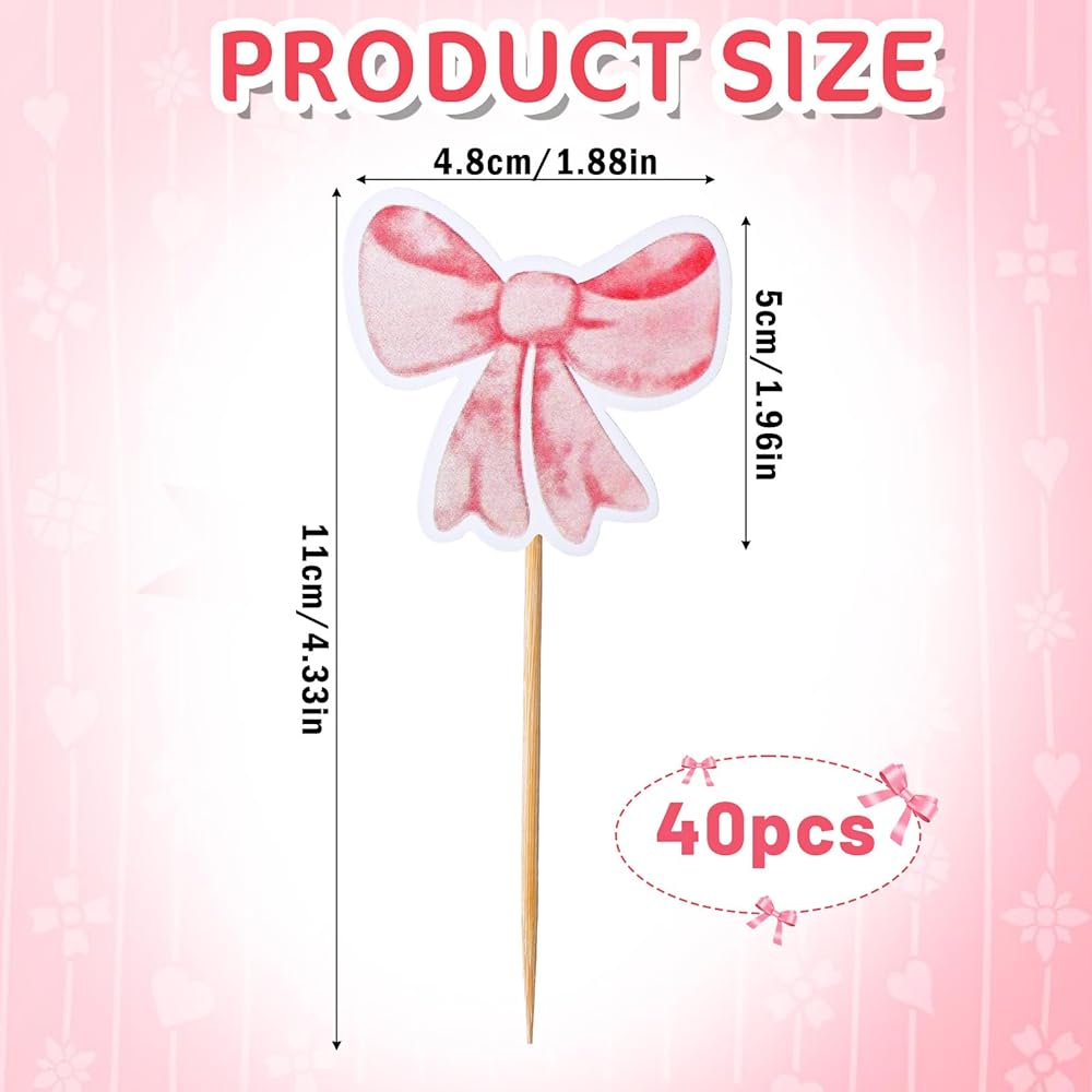 40 مجموعة من القبعات الوردية القوس الكب كيك ، قبعات القوس كب كيك ، ديكورات حفلة عيد ميلاد ، وعقد ربطة عنق الحلوى تختار الديكور كعكة الحلوى توبيبر للنساء