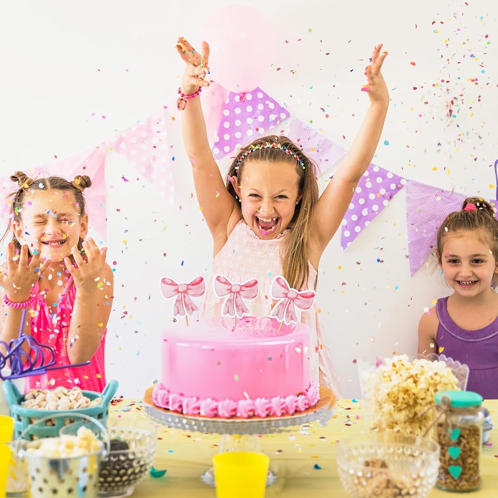 Pink Girls Birthday Party Decorations, Bridal Baby Shower Cake Dessert Picks Decor Pink Bow Girl Cake Smash Photo Props