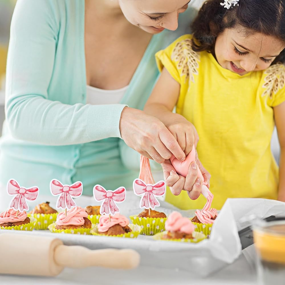 • 【Cute Design】Our delightful pink bow birthday cupcake toppers are bright, colorful, and full of charm. Featuring cute girly bows that are both fashionable and chic, this charming pink bow design adds a touch of elegance to your table setting, infusing creativity and color into your celebrations. They make the perfect finishing touch for any special occasion.