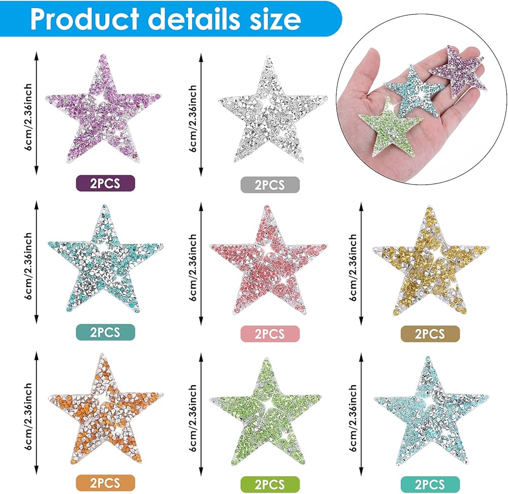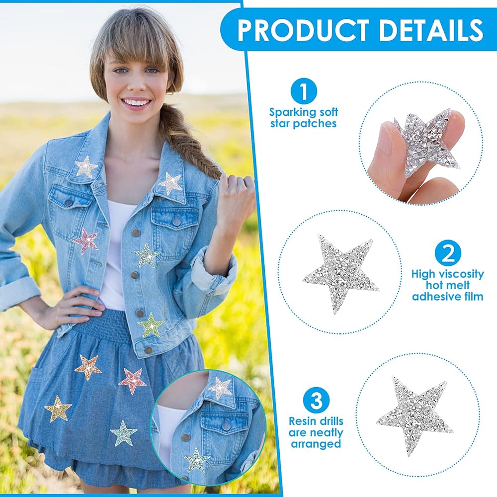 High-Quality Materials: these rhinestones star patches are mainly made of solid resin diamonds, sturdy and serviceable, stable and not easy to fall off, well suitable for clothing decoration, making your clothes shiny and characteristic.