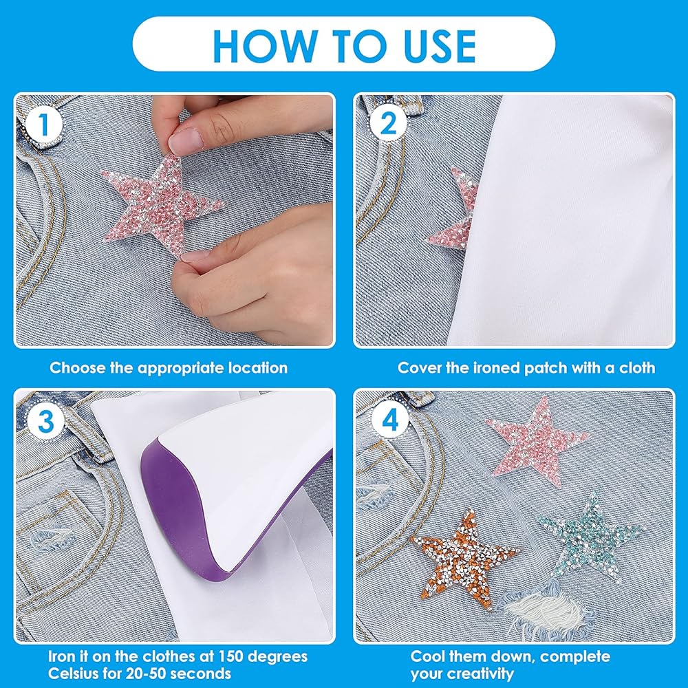 Wide Application: our star patches can be applied to many kinds of clothes, hats, jeans, dresses, jackets, bags, luggage accessories and other art projects for DIY ironing, simple and practical, an easy way to decorate your things