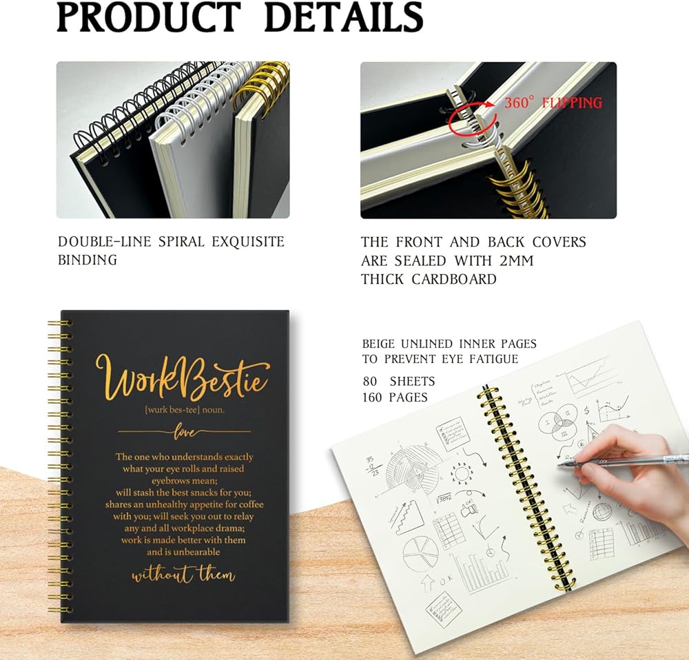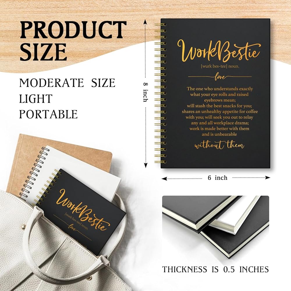 العمل Bestie Definists كتابة دفاتر , أجهزة الكمبيوتر المحمولة الحلزونية المضحكة Gold Foil مع 160 صفحة - هدايا العمل Bestie ، هدايا الوظائف الجديدة ، شكرًا لك هدية على زميل العمل ، عمل Bestie Gifts for Women