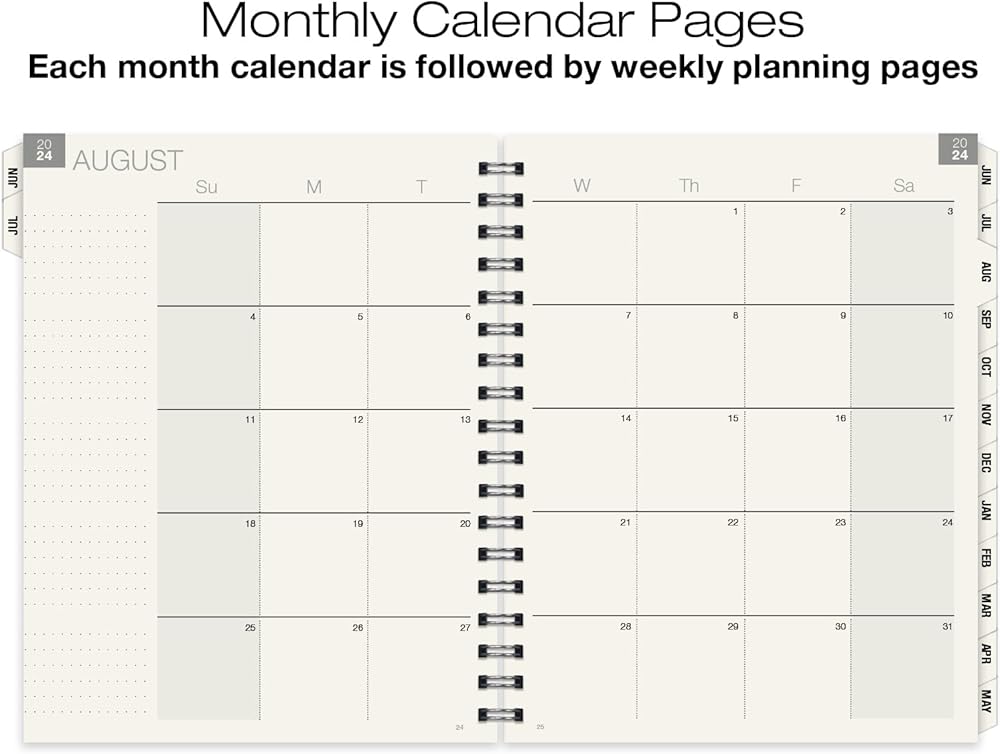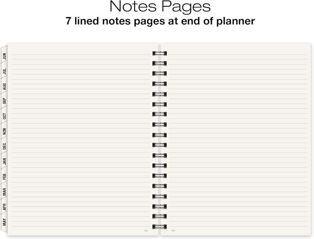 مخطط مع الكثير من مساحة الكتابة. طبعت على ورقة الكريمة (خارج البيضاء). الورق السميك سوف يمنع النزيف من خلال. واضحة الغطاء الواقي من الفينيل الأمامية والخلفية لتوفير مزيد من المتانة. ملزمة سلكية قوية لإلقاء نظرة احترافية.