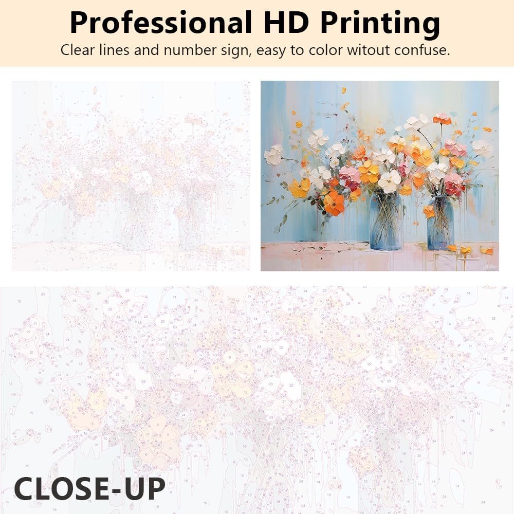 【Paint by Numbers】The pre-printed textured canvas exactly shows where to paint each color. This paint by numbers kit is suitable for everyone. You only need to paint following the numbers in canvas, then you will create an excellent painting by yourself.