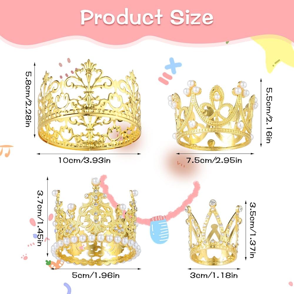 【4 PCS Crown Cake Topper】You will receive 4 different sizes and styles of mini crown cake topper, measuring 3.93 x 2.28 inches, 2.95 x 2.16 inches, 1.96 x 1.45 inches and 1.18 x 1.37 inches. These gold crown cake topper are not only suitable for cakes of all sizes, but also suitable for flower arrangements, bouquets, cupcakes, and other dessert decorations, giving your gifts a more unique charm in retro sparkle.