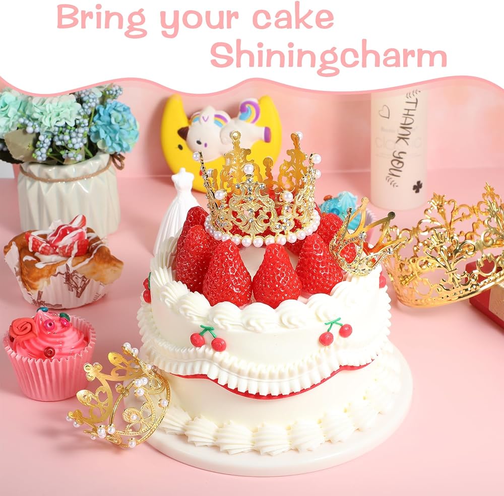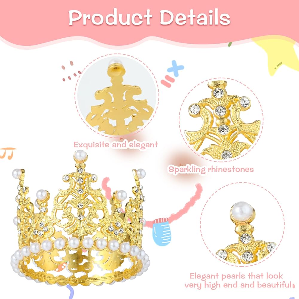 【Quality Metal Material】This gold birthday crown is made of durable alloy material, with sparkling rhinestones and elegant pearls. mini gold crown is light and safe, and can be used repeatedly. The gleaming metal and careful combination of pearls and rhinestones give the gold crown a high-end and majestic visual experience. gold crowns can not only elegantly decorate your cakes, flower arrangements, etc., but will also not sink or slip, ensuring the perfect decoration effect.