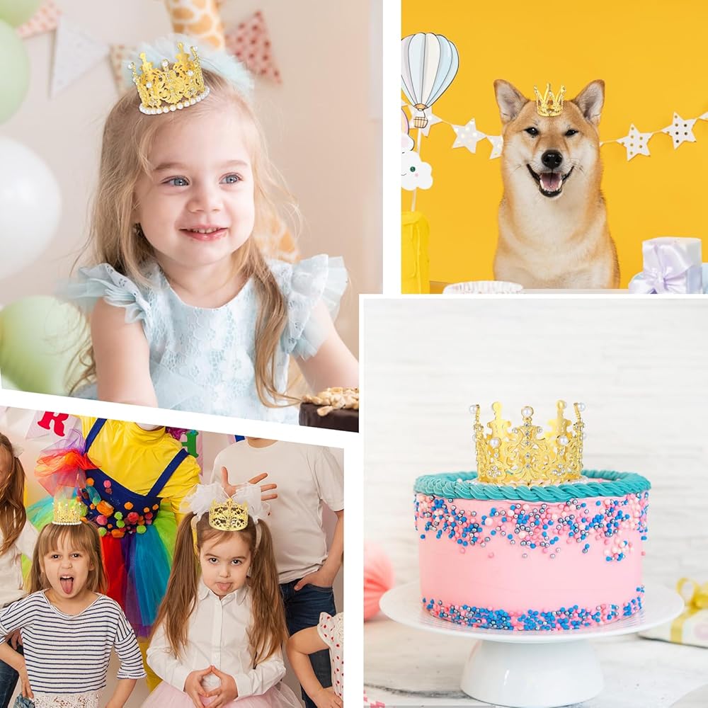 【Wide Range of Uses】These crown cake topper gold are not only suitable as exquisite hat decorations on cakes, but also as a crowning choice for floral creations. crown cake decorations can also be used as fashionable hair accessories for children, dolls, and pets, decorative tiaras for holiday outfits, and elegant additions to bouquets. Designed for both adults and children, these tiara cake topper are easy to use multiple times and add endless charm to your events.