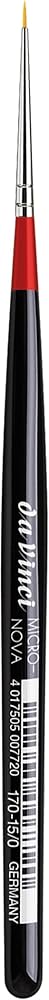 NEW! The da Vinci MicroNova Synthetic 4 Brush Detail Set features sizes 20/0, 15/0, 10/0, 5/0 in the new mini handle format for precision painting, retouch, modeling, restoration or spot painting. Handles are from sustainable European forests in the Baltic States. Expertly hand crafted by da Vinci's most skilled brush makers in Germany. Eco friendly manufacturing, family owned.