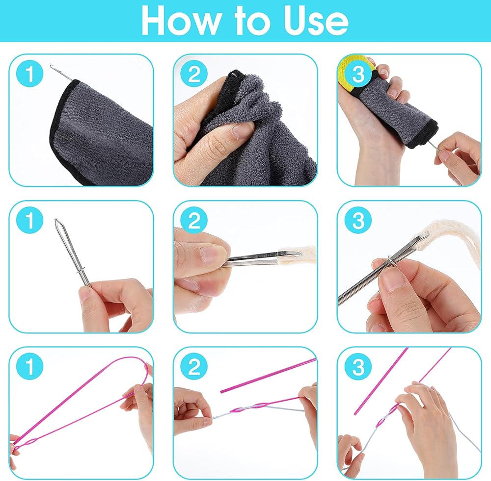 Sewing Flip Hook: The rope threader tool contains 2 flip hooks of different sizes, these hooks are suitable for flipping knitted items, and can easily pass through thin threads to simplify your sewing process.