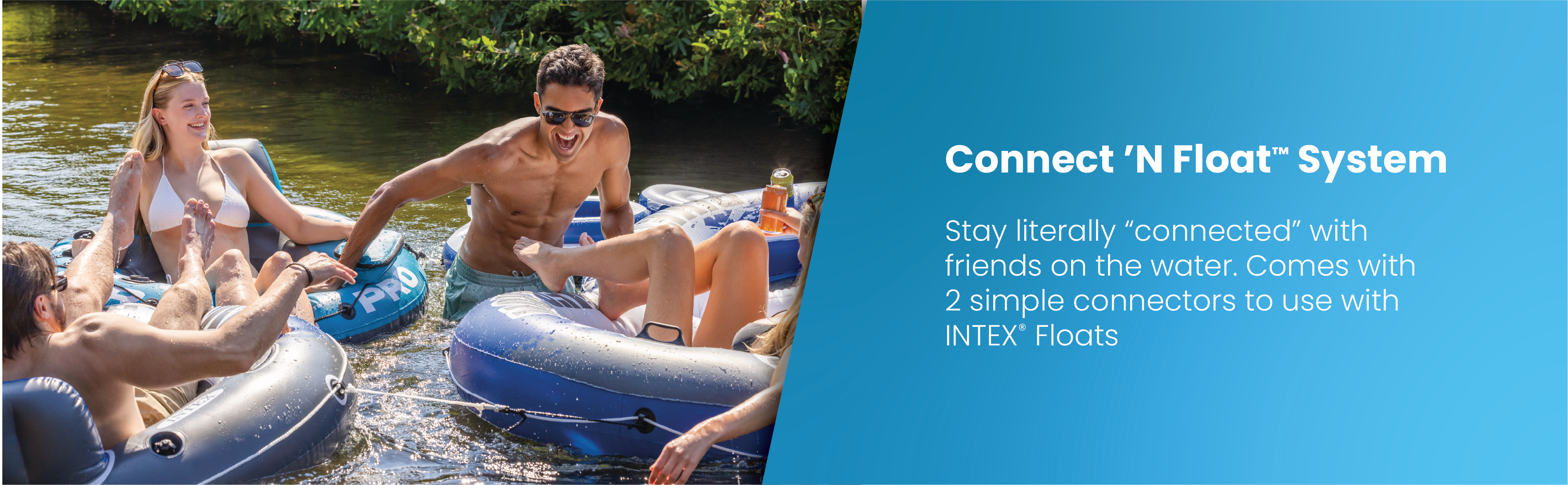 CONNECT WITH FRIENDS – Included with the tube are two easy-to-use connectors that allow you to connect with other INTEX floats, making it that much more fun to be out on the water
