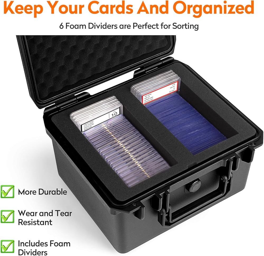 حماية من الضرر: حماية بطاقاتك القيمة من الخدوش ، فرك ، وجرح بدقة. فتحتان من الرغوة في الداخل مع كتل الرغوة ذات البطاقة الرياضية القابلة للإزالة لكل فتحة ، مما يضمن ملاءمة آمنة وفصل البطاقة الفردية