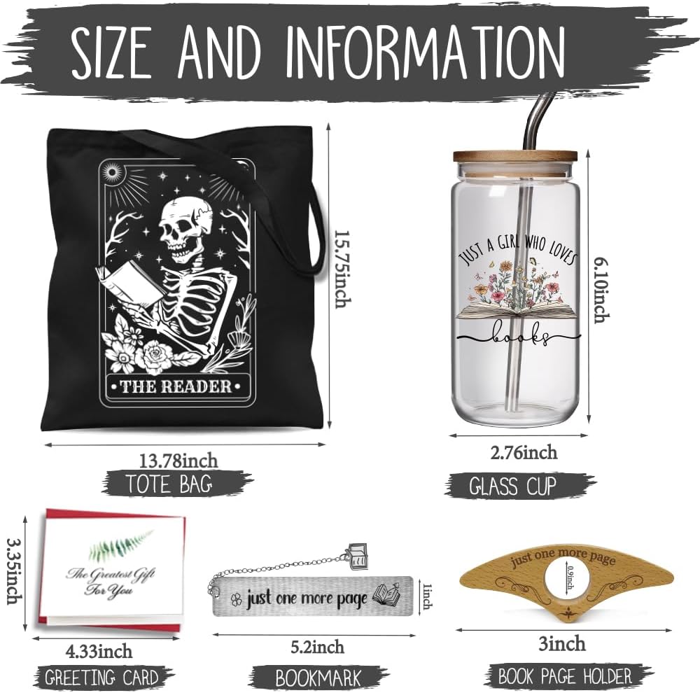 6pcs book boks homes pox pox pox للقراء تشمل نساء 16ozglass كأس ، إشارة مرجعية ، حقيبة حمل ، حامل صفحة الكتاب ، زخرفة الكتب ، هدايا مكتبة البطاقات لعشاق الكتب ، هدية نادي الكتاب لعيد الميلاد