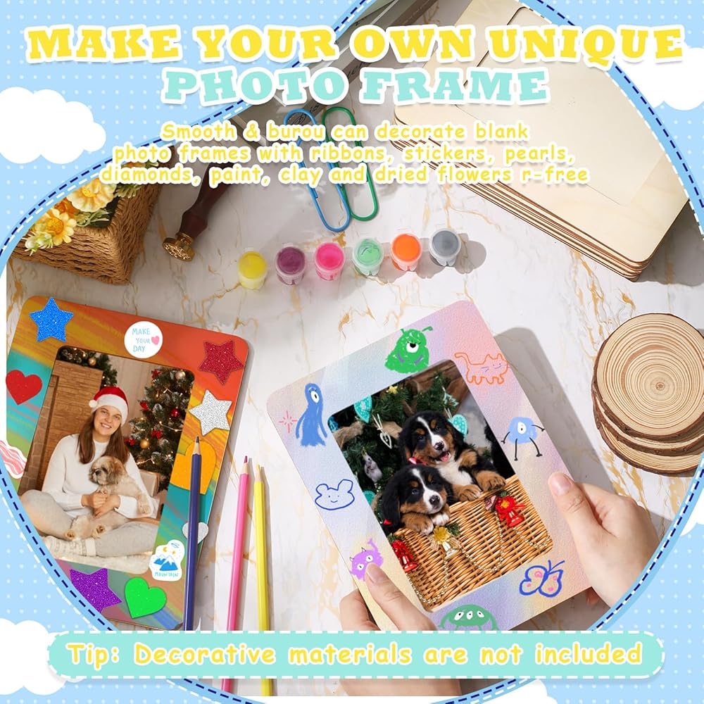 DIY Wooden Photo Frame Crafts: the blank frames with stands are more than just decorations; They're a canvas for your creativity; Use them to relax, improve your practical skills, and create unique photo frames that will hold everlasting memories