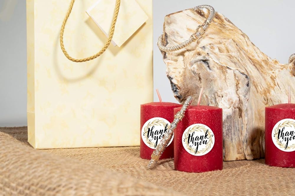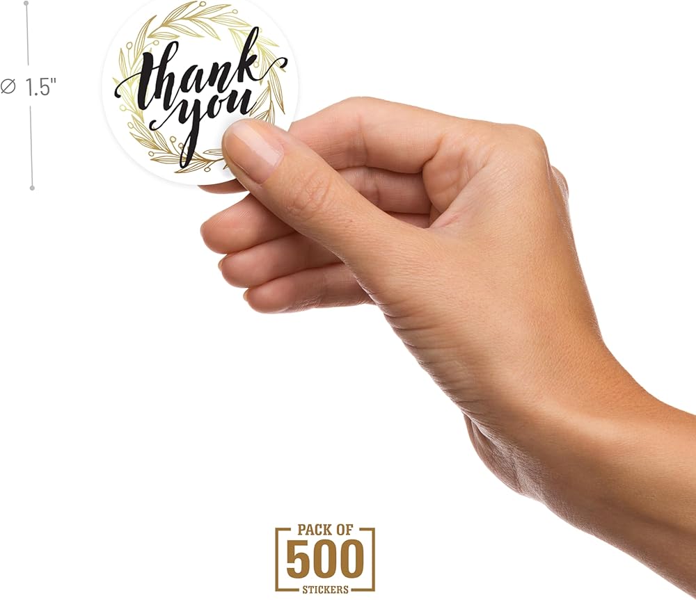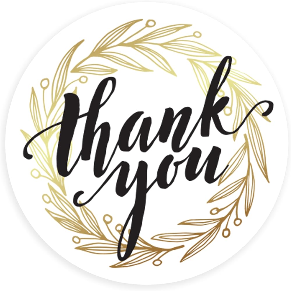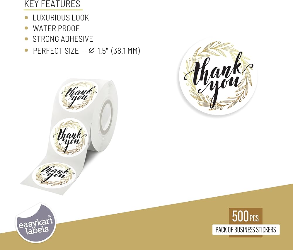 EasyKart Labels 500 شكرًا لك ملصق ملصق 1.5 بوصة مع أوراق الذهب لأعياد الميلاد وحفلات الزفاف والهبات والاستحمام الزفاف ومثالية لمالك الأعمال الصغيرة (لفة واحدة)