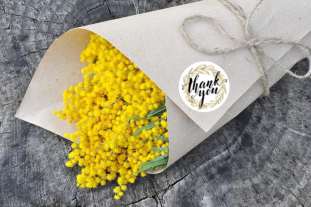 نظرة ومظهر متميز - شكرًا لك على ملصقاتك على ورقة لاصقة ذات جودة متميزة ذات جودة عالية مع تأثير إحباط Gold Matt الخاص الذي يعطي لمسة لامعة وأنيقة. matt التصفيح على هذه الملصقات الشكر يضيف إلى النهاية الأنيقة والأنيقة.