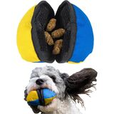 The Clam is an innovative treat-dispensing toy that makes training a whole lot more rewarding for you and your food-motivated dog! This pocket-sized training aid is perfect for rewarding your dog from a distance - for example when teaching jump grids in agility, or practising flyball. Small enough to keep hidden from sight until you need it, it's weighted perfectly for throwing and comes in colour combinations that are easy for dogs to see. The best thing about the Clam is its clever opening mechanism: big enough for your dog to push their nose into, but too small for the treats to fall out when the toy is thrown. This allows your dog to be instantly rewarded, eliminating the frustration they may feel if they have to wait for you to catch them up, and thereby maximising your training results. Once your dog gets the hang of it, they will absolutely love racing to claim the 'pearls' held within their Clam! Our Clam Training Guide will help you maximise your results in minimal time. Small and compact, but with enough weight for throwing. Clever opening: big enough for your dog to get their treat, but too small for the treat to fall out ensures your dog only swallows the food you want them to. Designed with your dog's needs in mind to reduce training frustration and maximise results. Improves your relationship by rewarding your food-driven dog in the way they like best! Made in the UK, Tug-E-Nuff toys are designed for interactive play and should only be used with supervision. The Clam measures approximately 11cm or 4.5inches in diameter