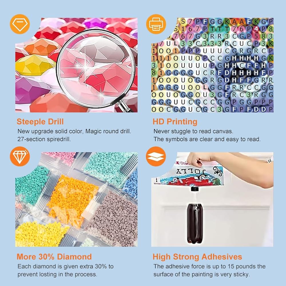 • أضف فرحًا إلى الحياة-يمكن لمجموعات الطلاء DIY Diamond أن تحسن القدرة العملية ، وتقلل من التوتر وتخفيف المشاعر ، وتجربة الشعور بالإنجاز ، وتعزيز الثقة بالنفس وزراعة الصبر ، مناسبة للبالغين ، والمسنين والشباب