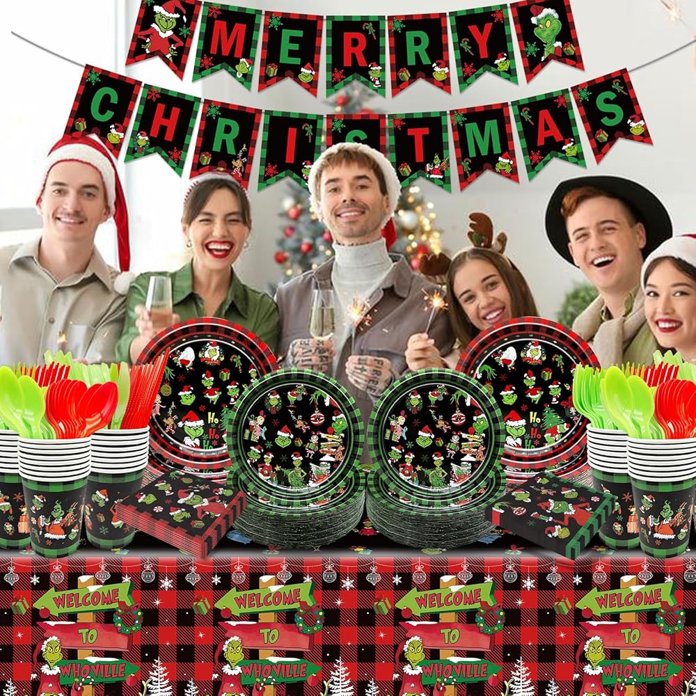 185pcs زخارف عيد ميلاد عيد ميلاد عيد الميلاد لوازم حفلات عيد الميلاد مجموعة أدوات المائدة أدوات عيد الميلاد والمناديل مع أدوات مائدة عيد الميلاد لزخارف حفلة عيد الميلاد زخارف عطلات سعيدة