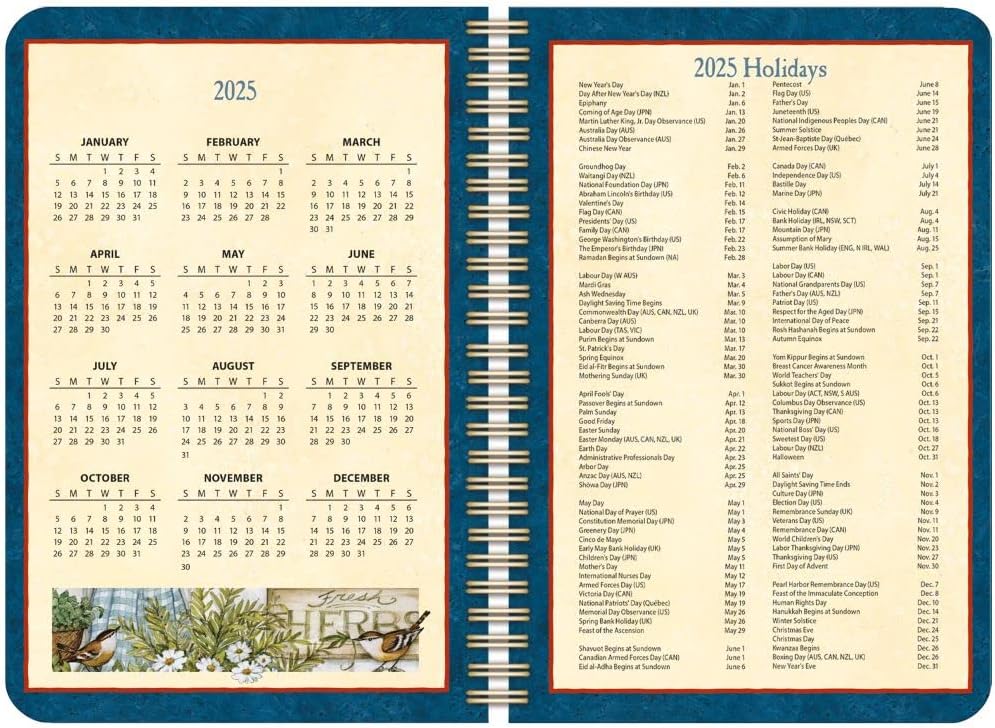 The Heart & Home 2025 Spiral Bound Engagement Planner is filled with artwork of relaxing home and garden scenes painted by Susan Winget. LANG Spiral Engagement Planners feature weekly and monthly calendar views, spiral wire binding, premium paper stock and additional pages for notes and addresses.