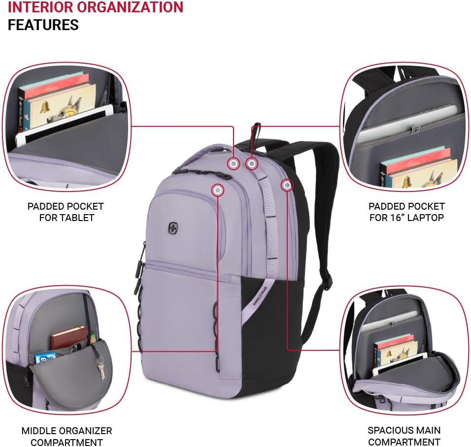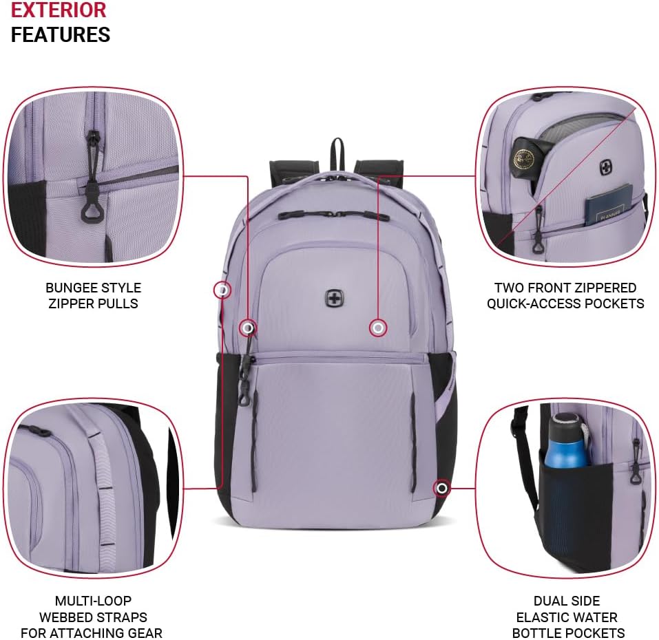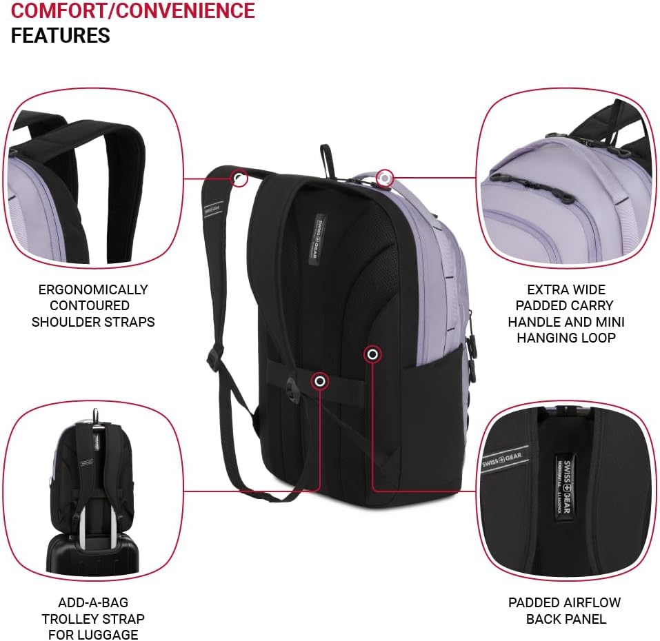 Add-a-Bag Strap: A must-have travel backpack for men and women, this SwissGear backpack includes an add-a-bag rear strap that fits over luggage extension handles for easy and convenient movement through airports