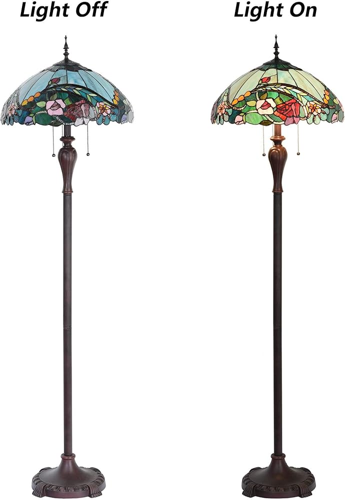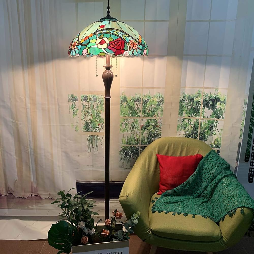 الزخرفة: عاكس الضوء الزجاجي الملون يحتوي على تصميم الورود الحمراء والوردية ، والخلفية الخضراء تجعل الزهور أكثر جمالا. إنه يضيف أجواء رائعة عند إضاءةها ، وتناسبها تمامًا لغرفة المعيشة الخاصة بك.