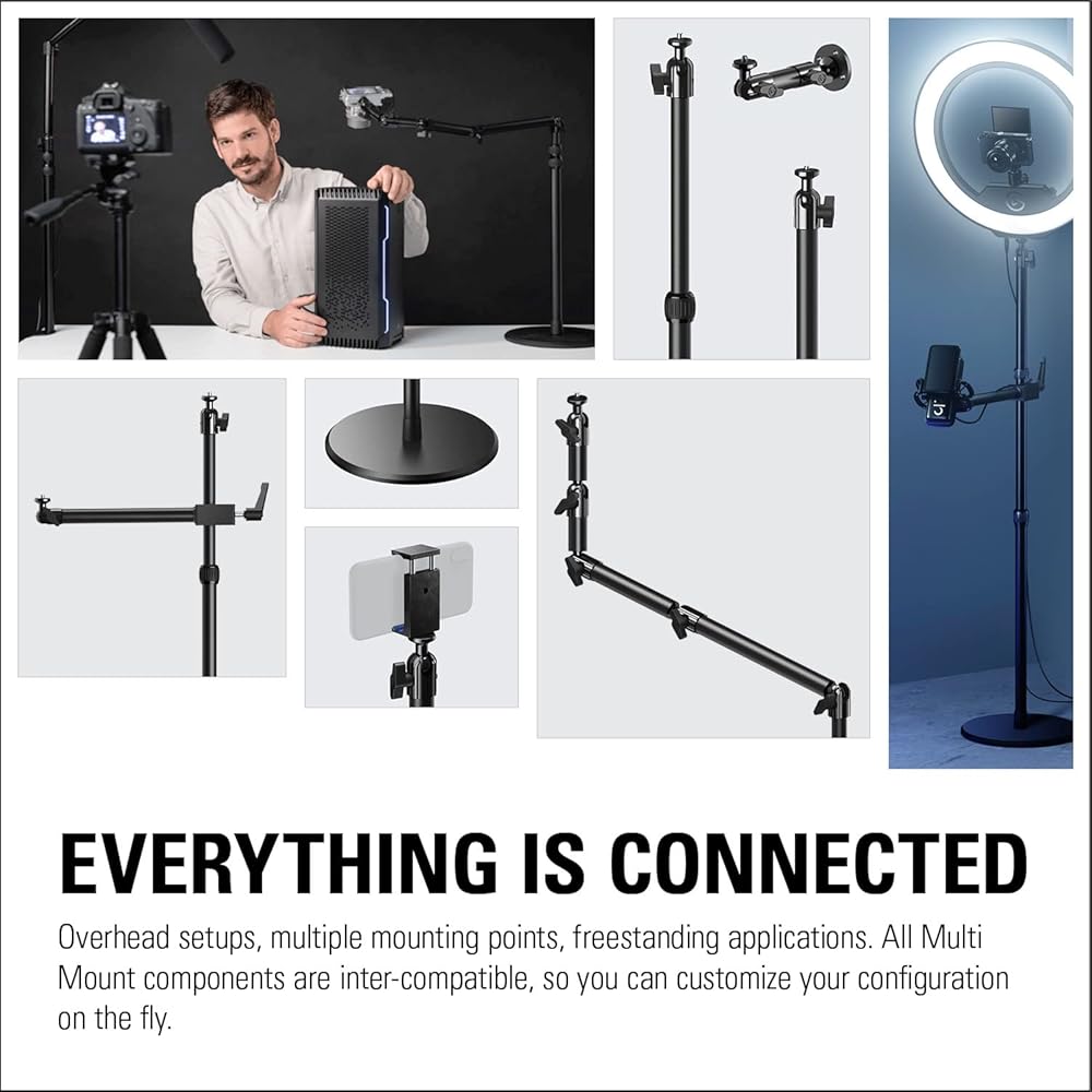 مصنوع من الألومنيوم المتين مع بطانة مطاطية مضادة للانزلاق، يُعد Elgato Cold Shoe حلاً متعدد الاستخدامات لمعدات الإنتاج الخاصة بك. قم بتوصيل الترس بالكاميرا، أو جهاز Elgato Multi Mount، أو حوامل الإضاءة، أو الحوامل الثلاثية، أو أي جهاز مزود بمسمار ¼ بوصة. ثبته في الوضع المثالي مع دوران 360 درجة وإمالة 180 درجة.