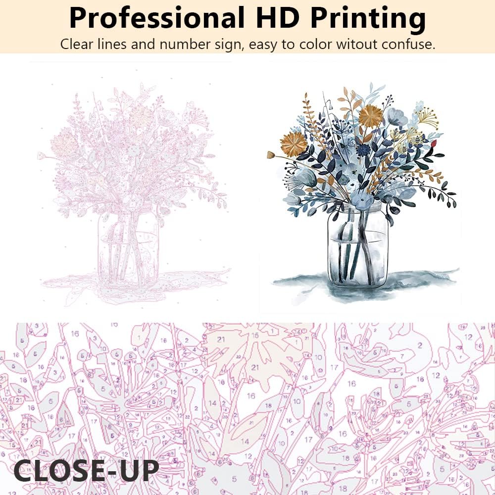 طلاء الزهرة حسب الرقم ، والطلاء بأرقام للبالغين ، مبتدئين ، رسم زيت DIY بأرقام على قماش مع فرش وصباغية للأطفال الهدايا المثالية - 16 × 20 بوصة ، دون تأطير